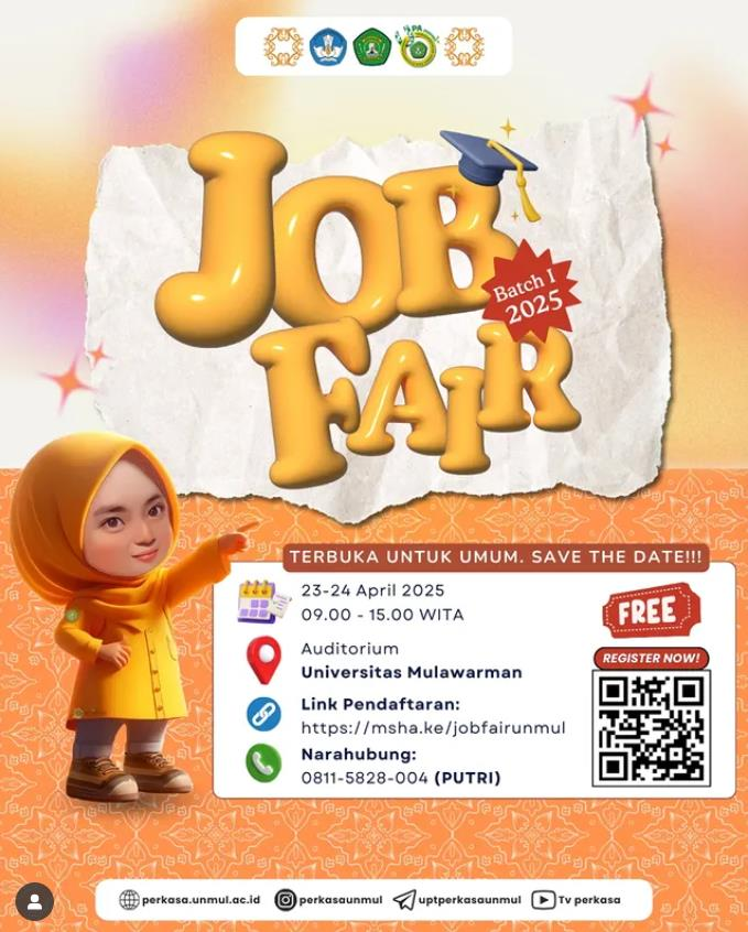 Job Fair Unmul Batch I Tahun 2025 Post published:23 April 2025 Post category:PENGUMUMAN Tags: lowongan