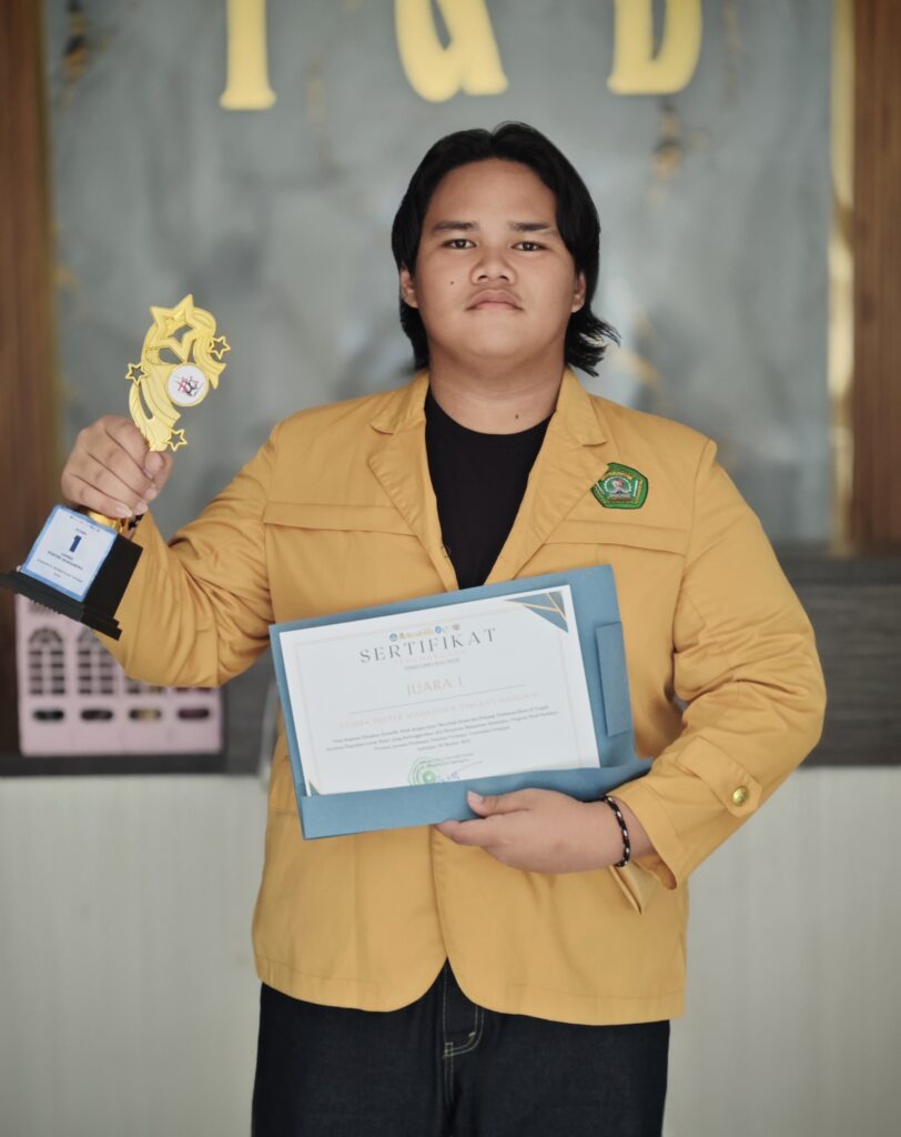 Juara 1 Lomba Poster dan Finalis Lomba Essay – Himakua Scientific Work tahun 2025 Universitas Sriwijaya Post published:27 Oktober 2025 Post category:BERITA Selamat kepada:2306016033 FERI SANDI (Finalis Essay)2306016031 BAYU ANDHIKA (Juara 1 Poster)2406016028 MARISA ELISTA Tags: prestasi